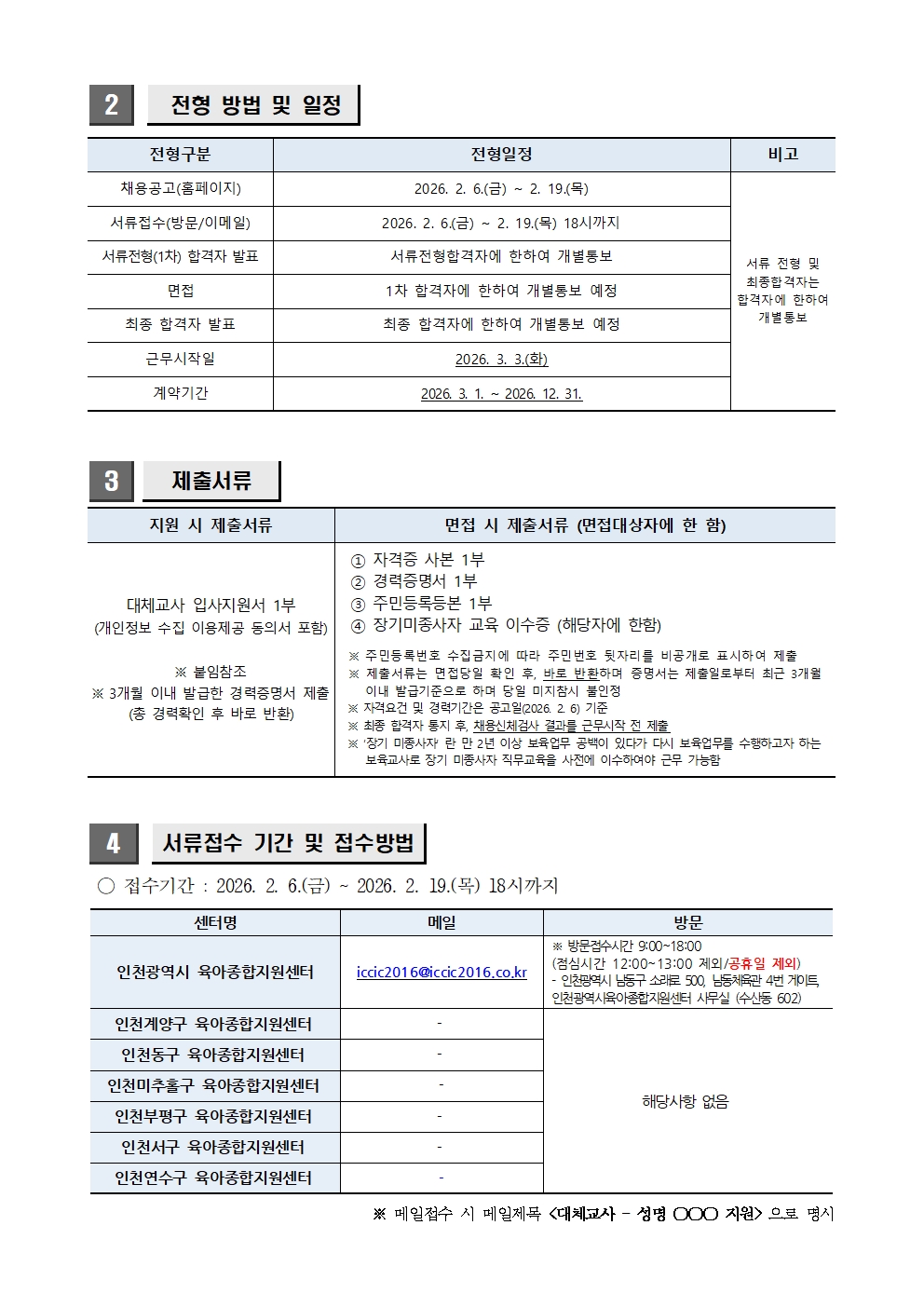 [인천광역시육아종합지원센터] 「2026년도 대체교사지원사업」 대체교사 인력채용