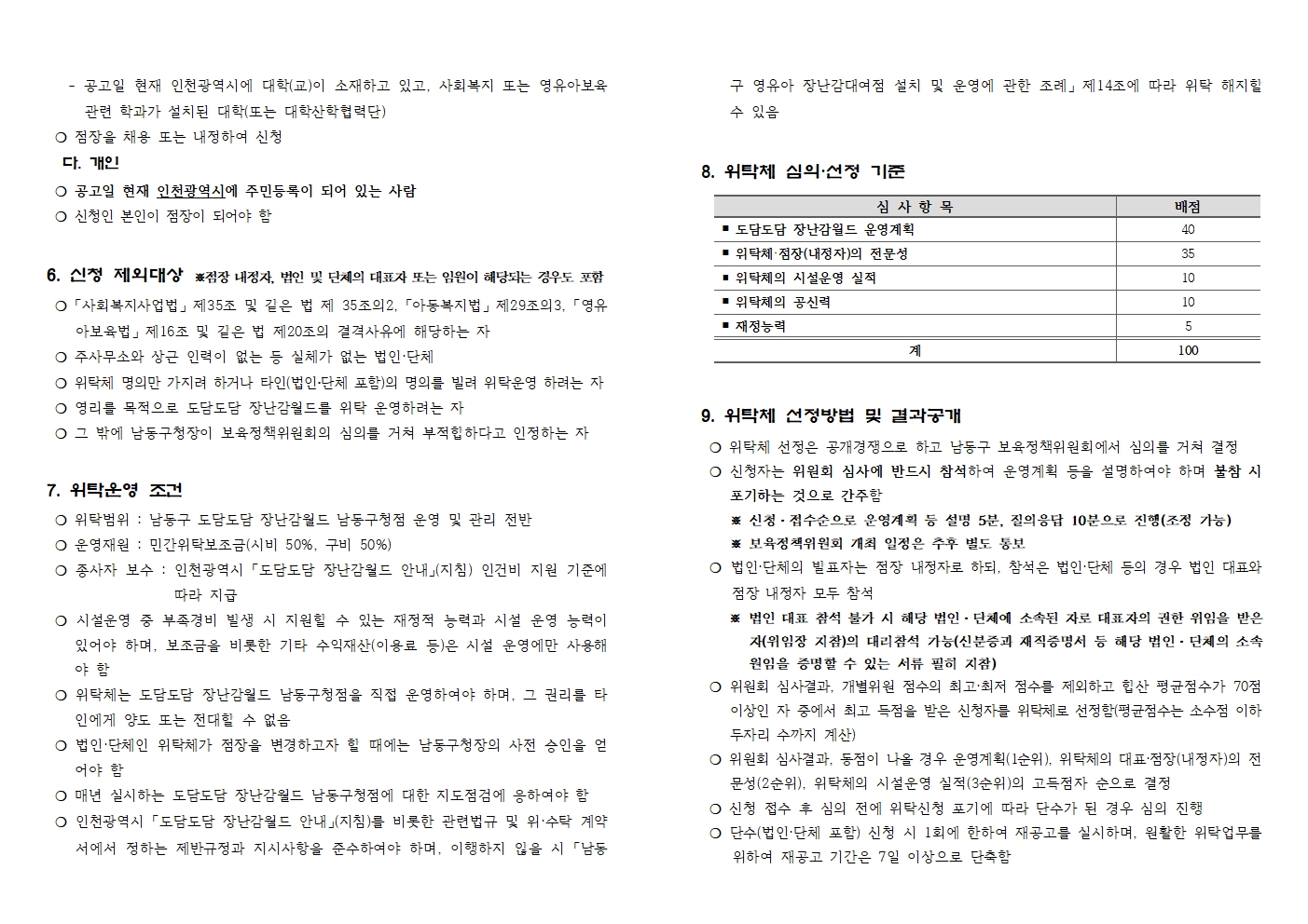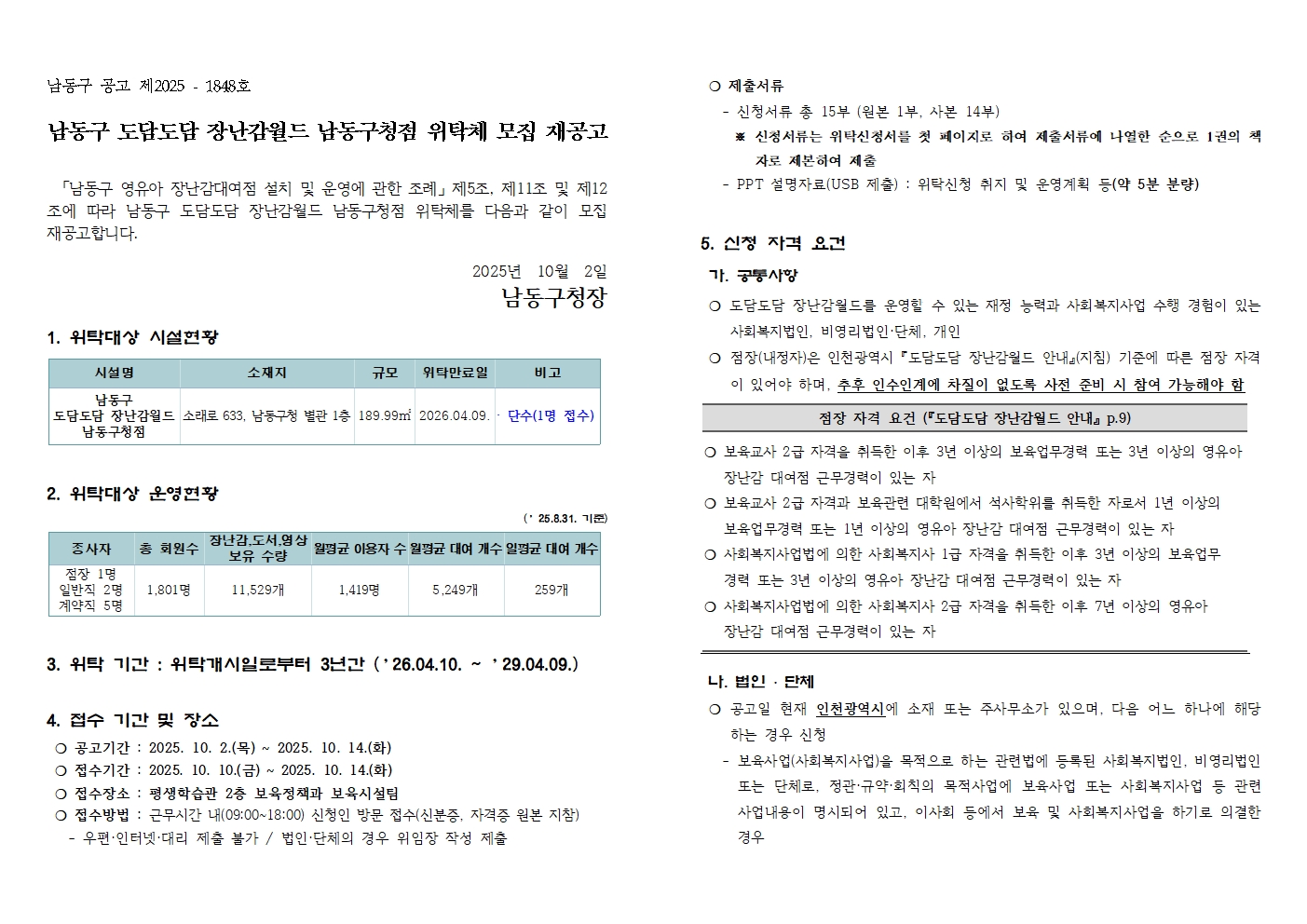 [남동구청] 도담도담 장난감월드 남동구청점 위탁체 모집 재공고