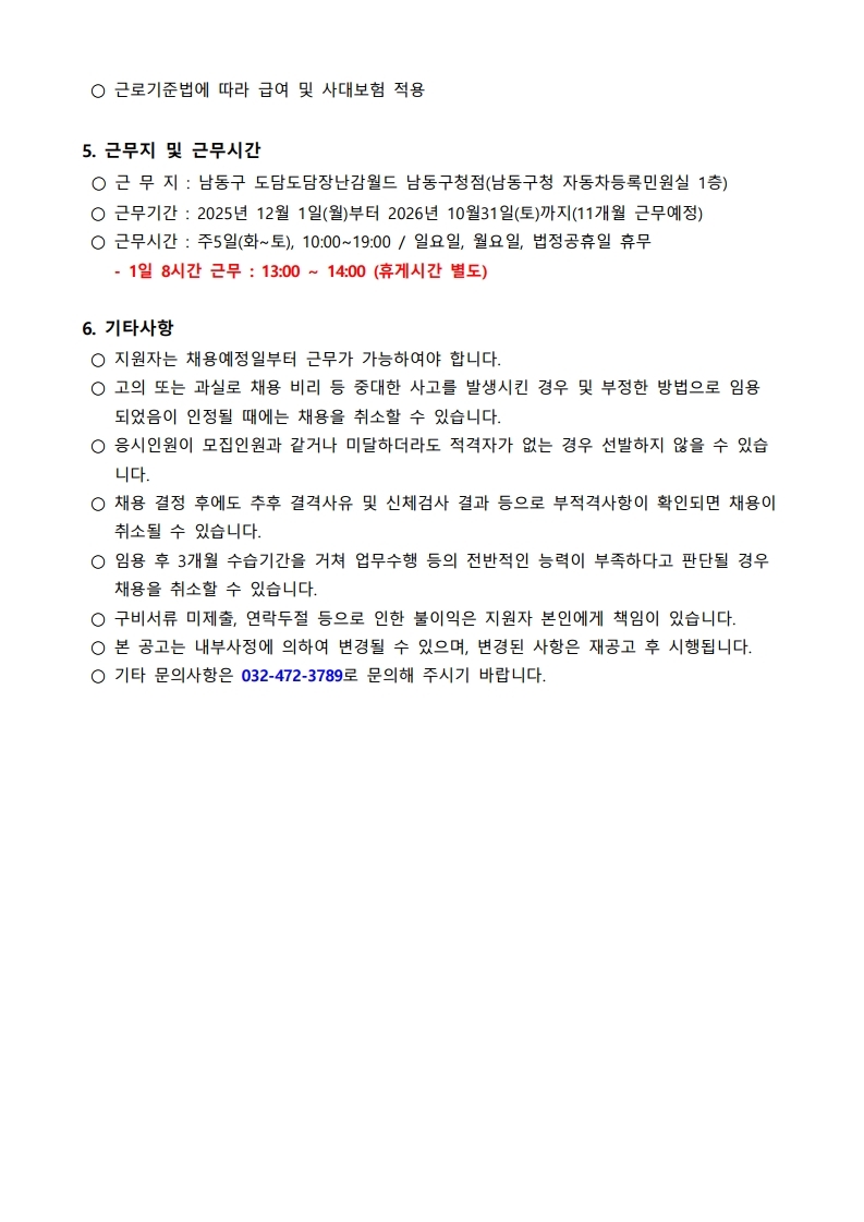 남동구 도담도담장난감월드 남동구청점 기간제 채용 지원서(2025년).hwp