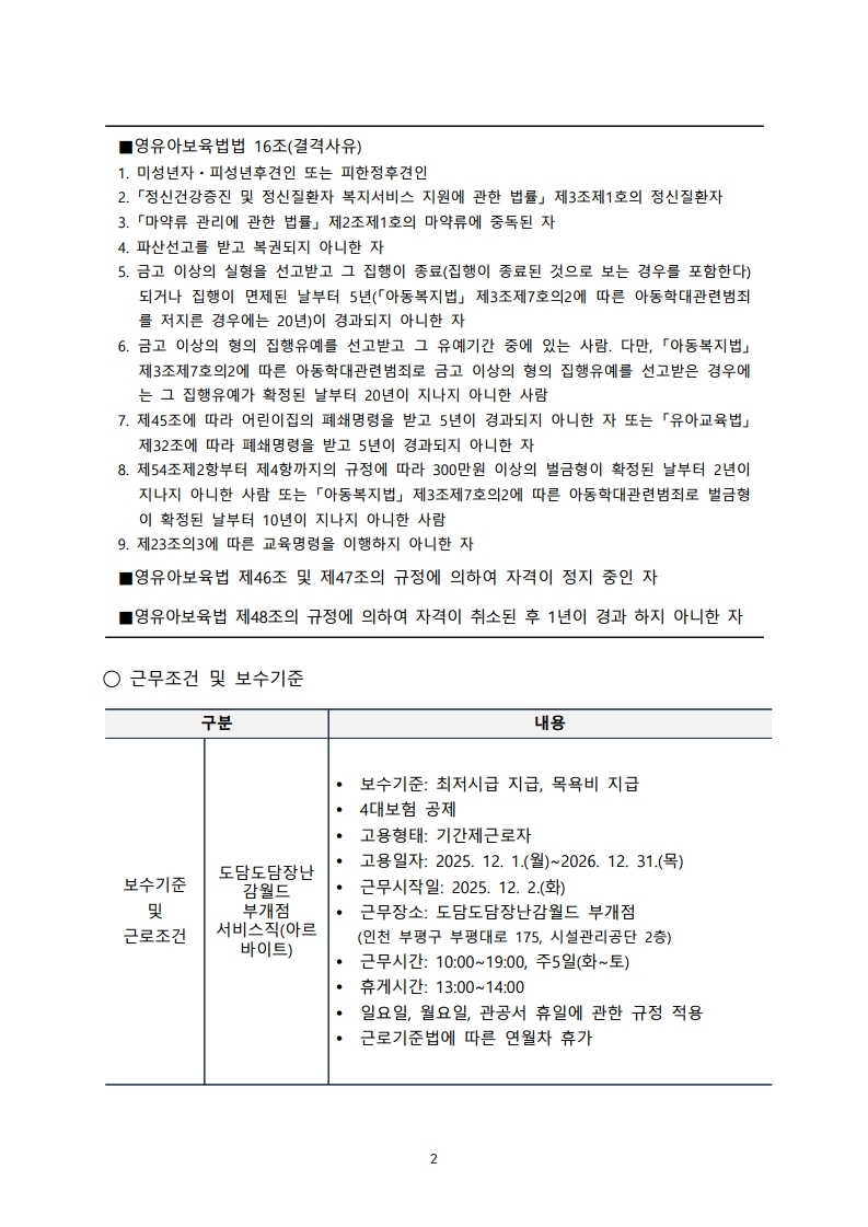 [부평구육아종합지원센터] 2025년 제6회 직원 채용 공고