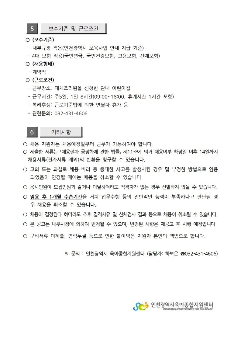 [인천광역시육아종합지원센터] 인천광역시육아종합지원센터 대체조리원지원사업 대체조리원 인력 채용
