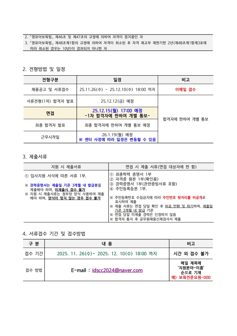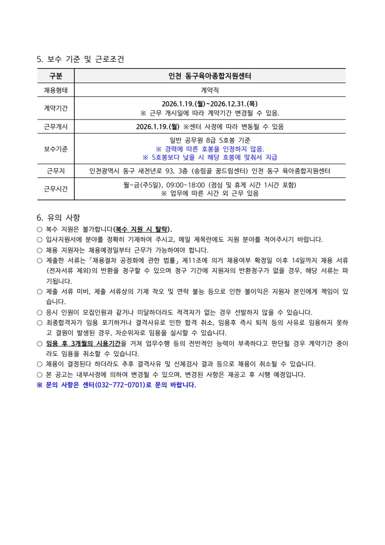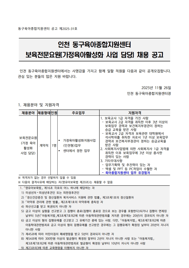 [동구센터] 직원 채용(보육전문요원-가정육아활성화 사업 담당)공고