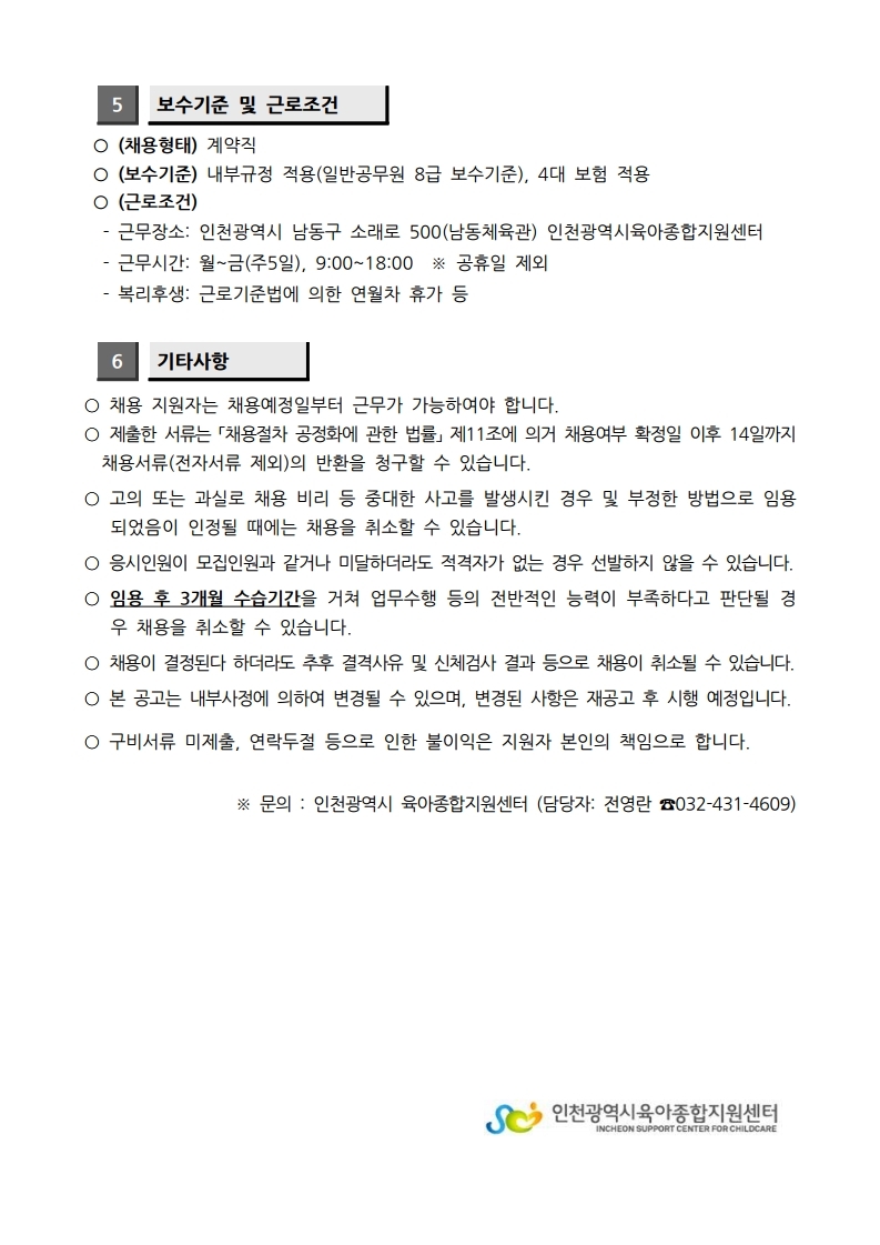 [인천광역시육아종합지원센터] 2026년 직원(상담전문요원) 채용 공고
