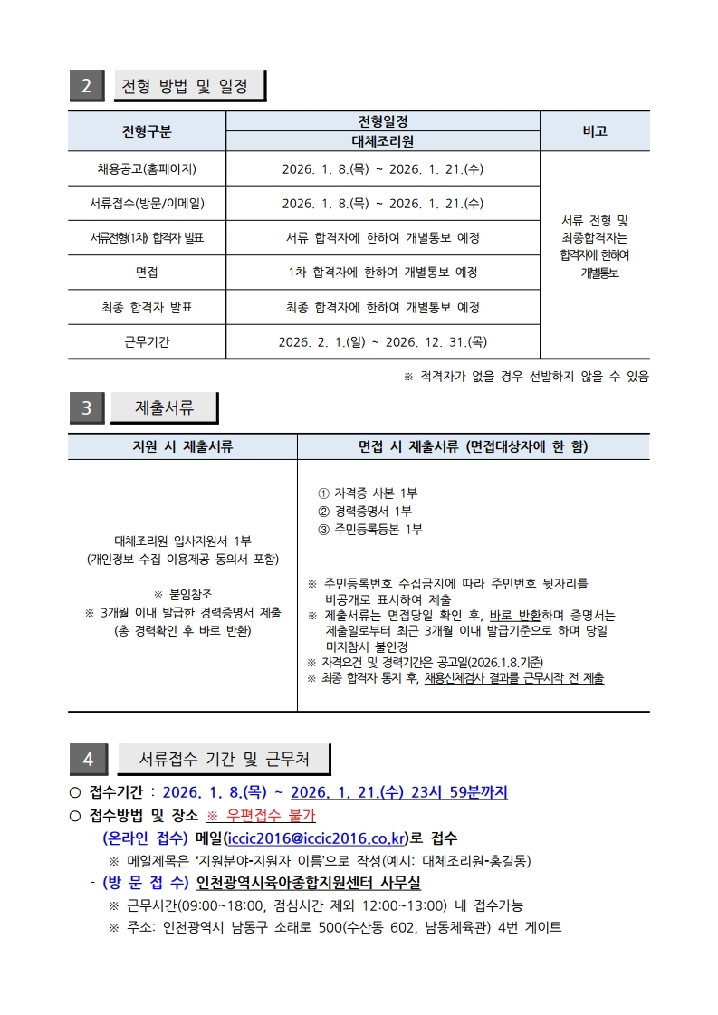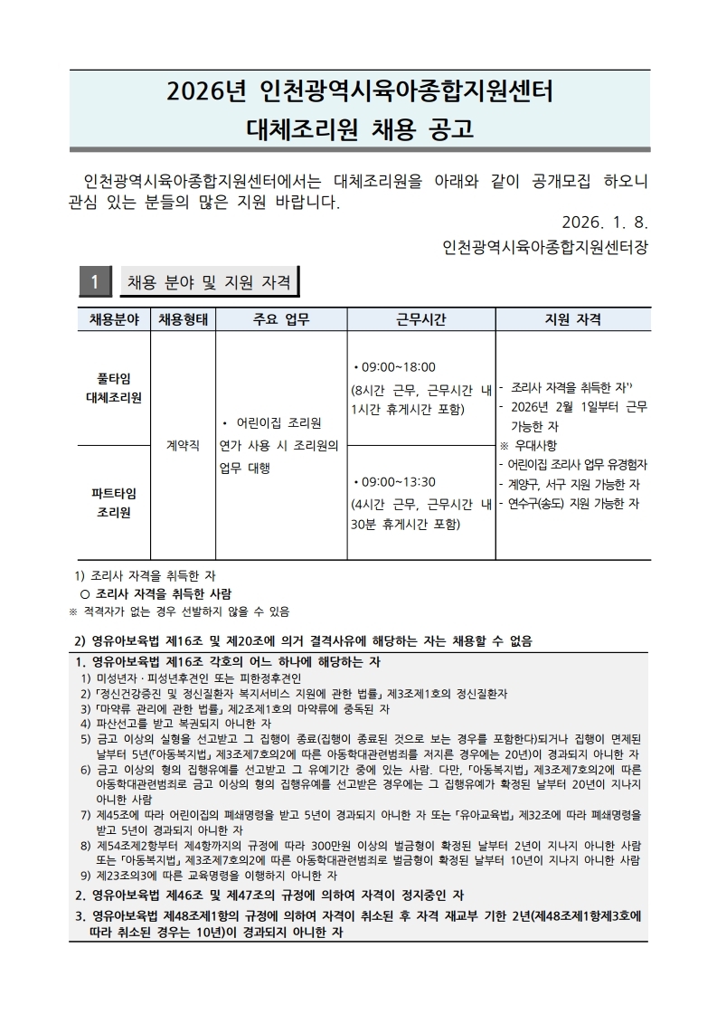 [인천광역시육아종합지원센터] 인천광역시육아종합지원센터 대체조리원지원사업 대체조리원 인력채용 공고