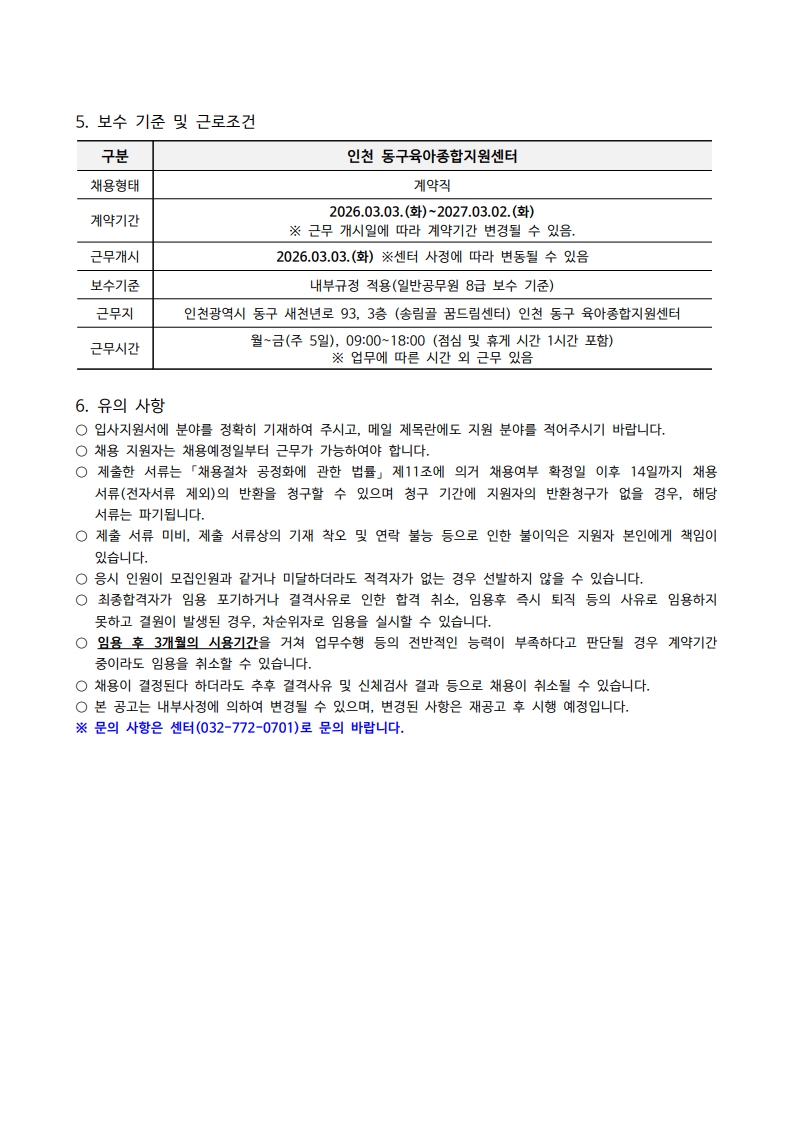 [인천광역시육아종합지원센터] 대체교사관리자(장애인) 채용 공고