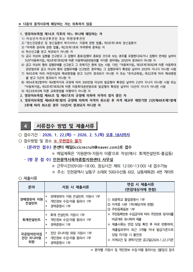[인천광역시육아종합지원센터] 2026년 인천광역시육아종합지원센터 비상근 컨설턴트 모집