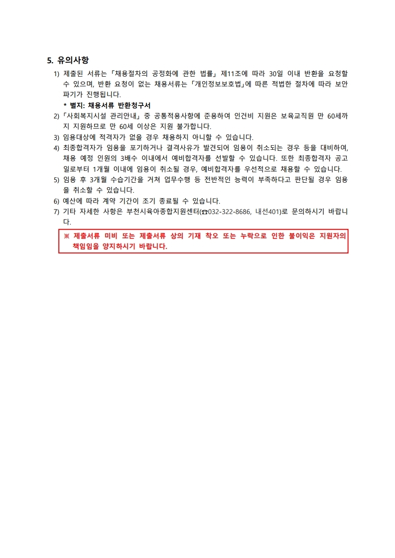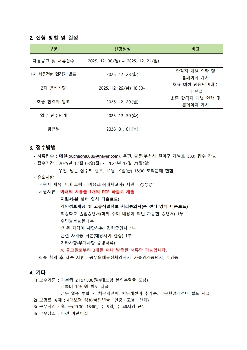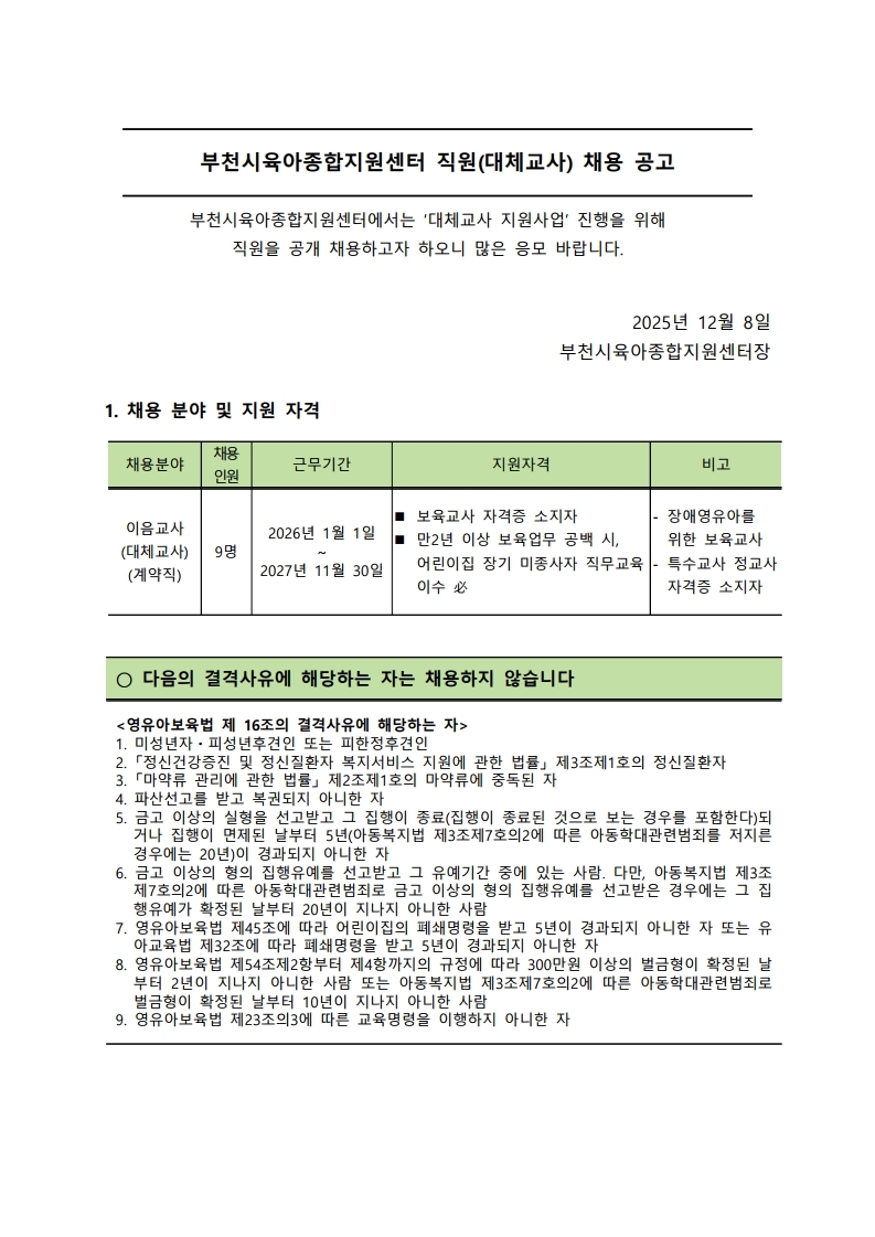 [부천시육아종합지원센터] 직원 채용공고(대체교사)