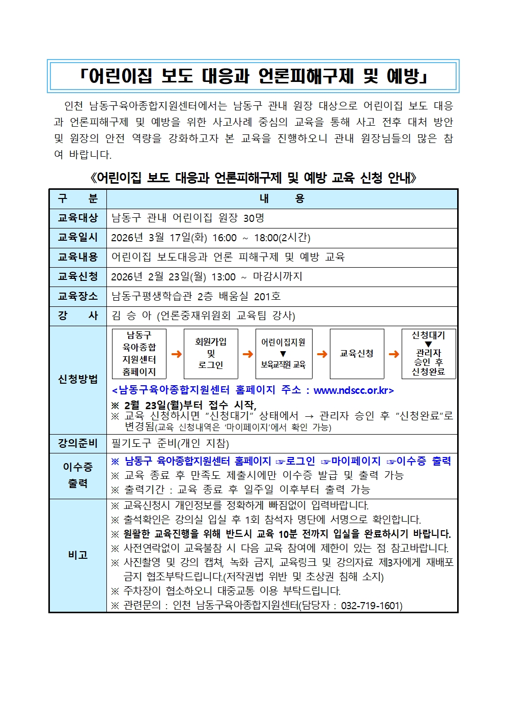 | 어린이집 언론피해 구제 및 보도대응 교육 | |||