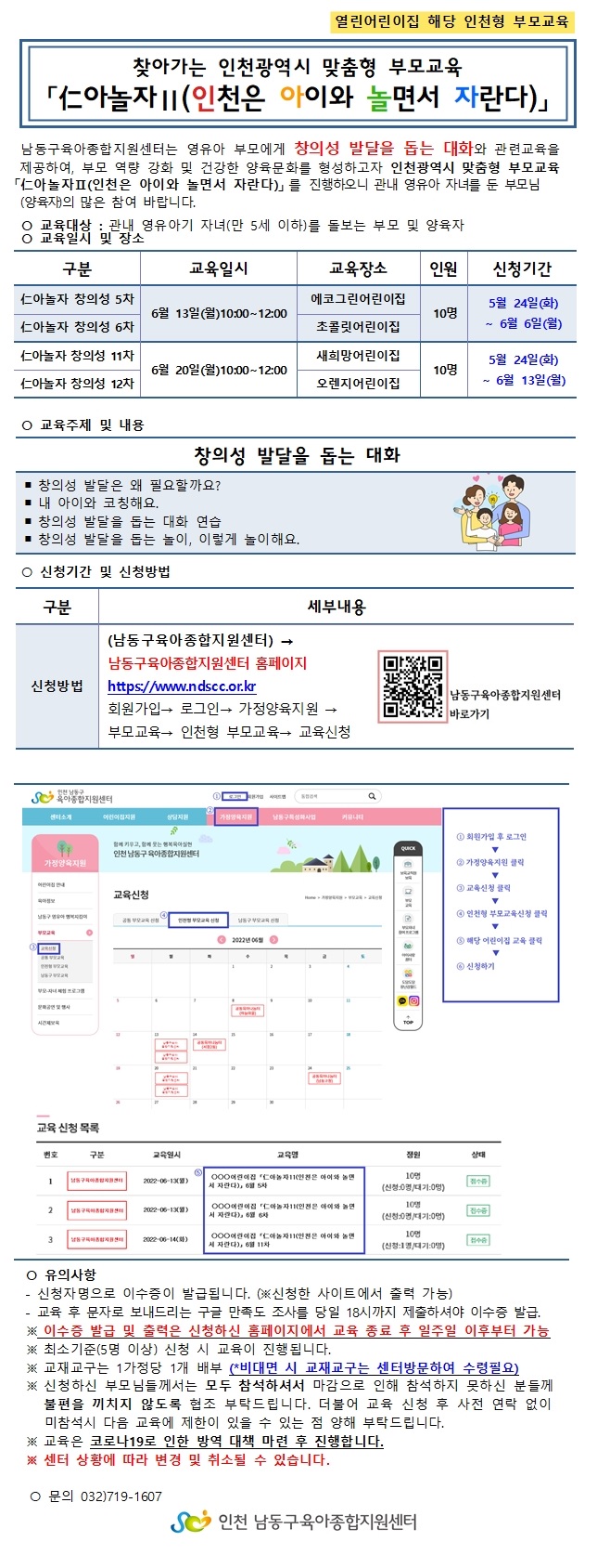 함께 키우고, 함께 웃는 행복육아실현 인천 남동구 육아종합지원센터