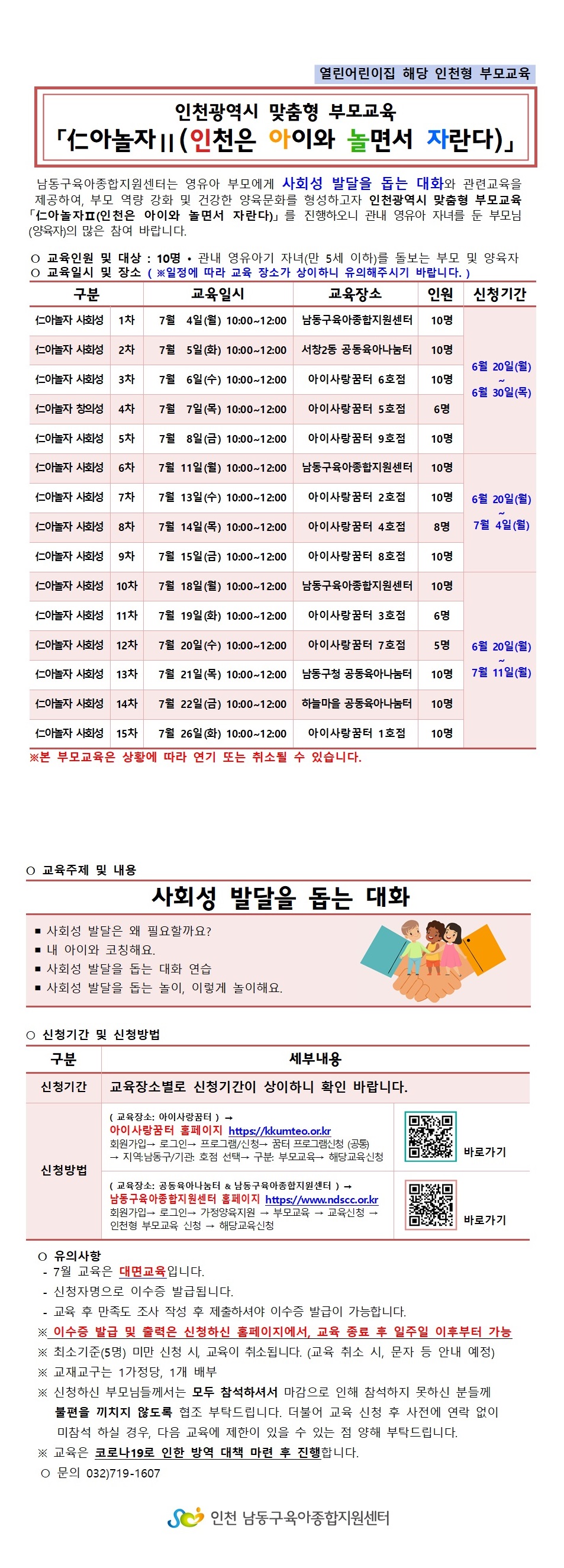 「仁아놀자Ⅱ(인천은 아이와 놀면서 자란다)」 7월 3차