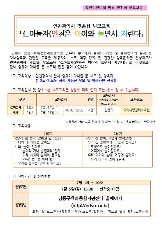 | [아이사랑꿈터(4호점)]「仁아놀자(인천은 아이와 놀면서 자란다」 | |||