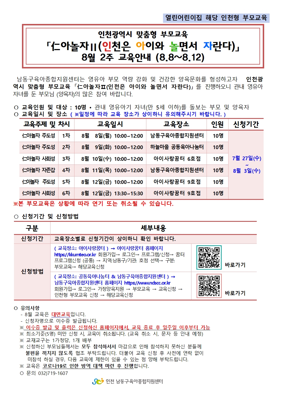 | 「仁아놀자Ⅱ(인천은 아이와 놀면서 자란다)」 8월 4차 | |||