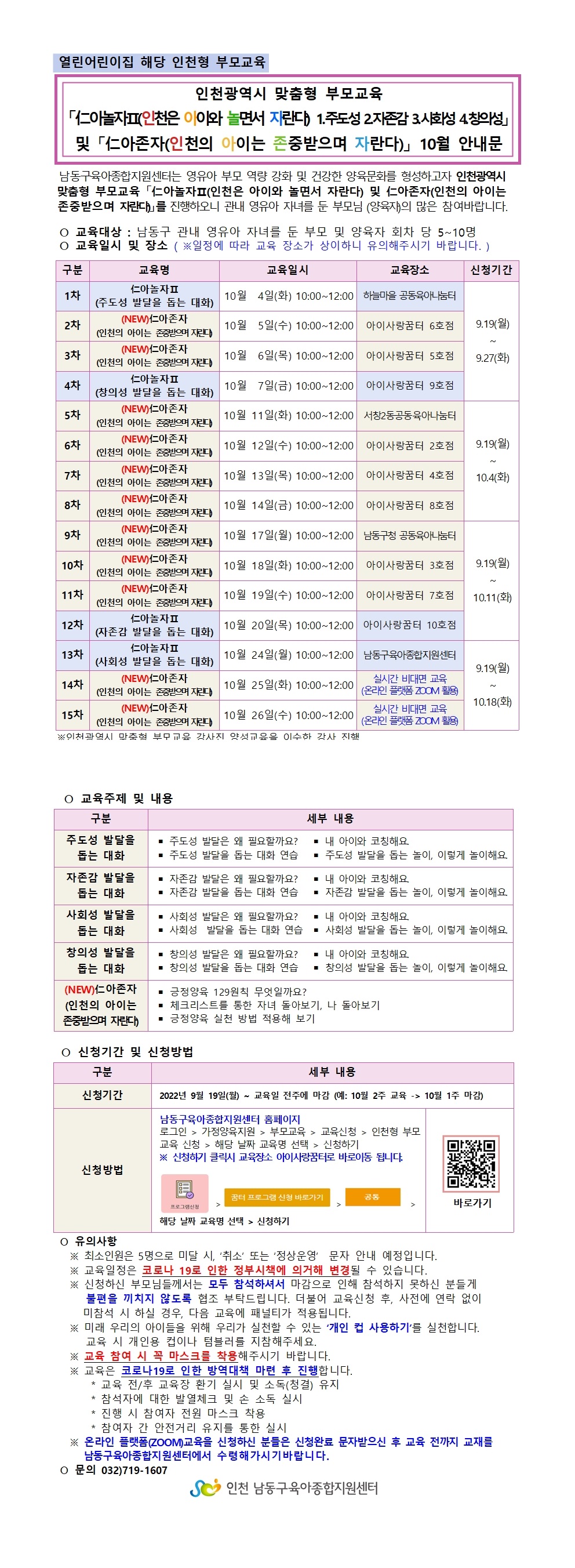 | 「仁아존자(인천의 아이는 존중받으며 자란다)」 10월 10차 | |||