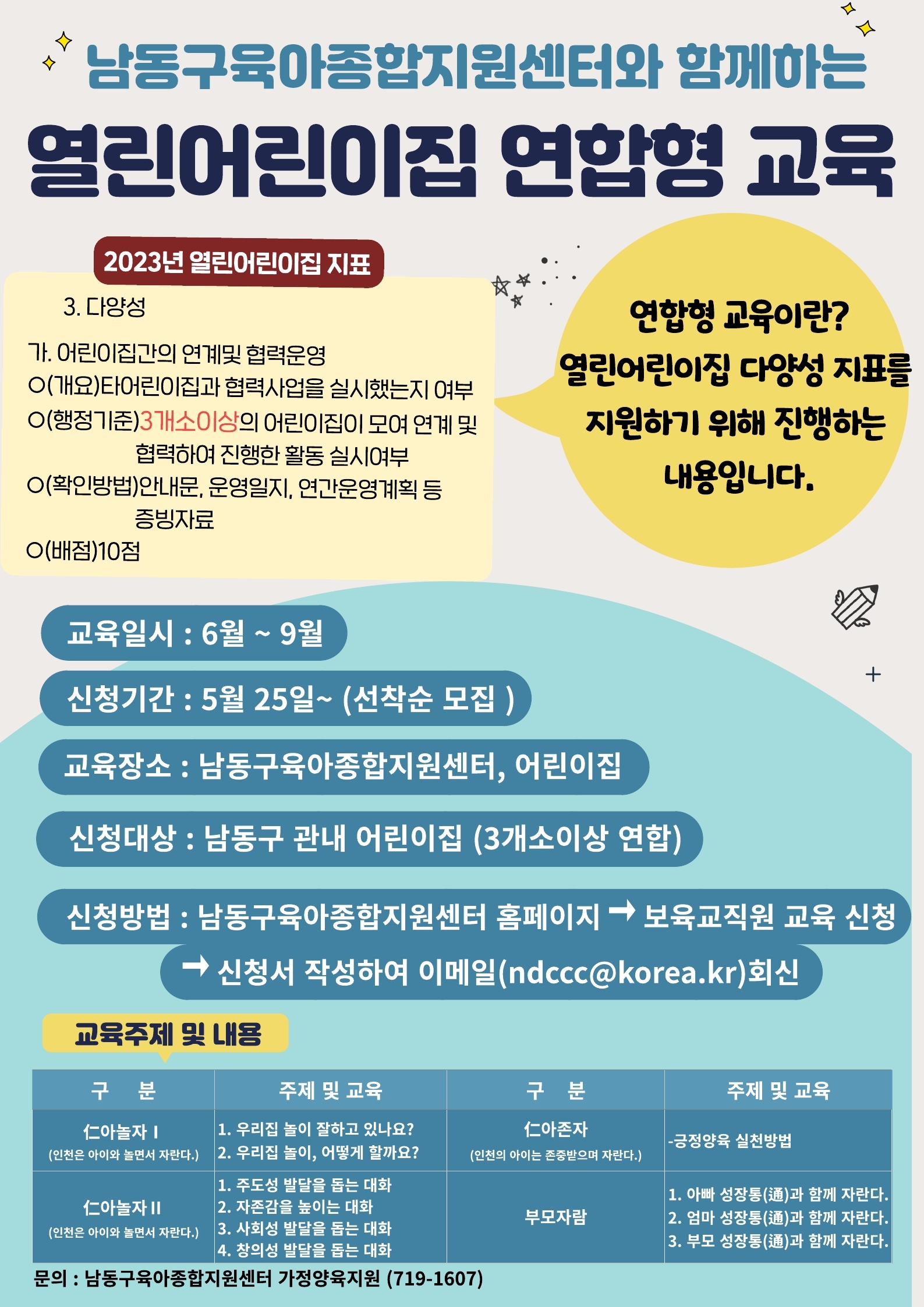 | 열린어린이집 연합형 교육[인천광역시 맞춤형 부모교육] 연합형 1차 | |||