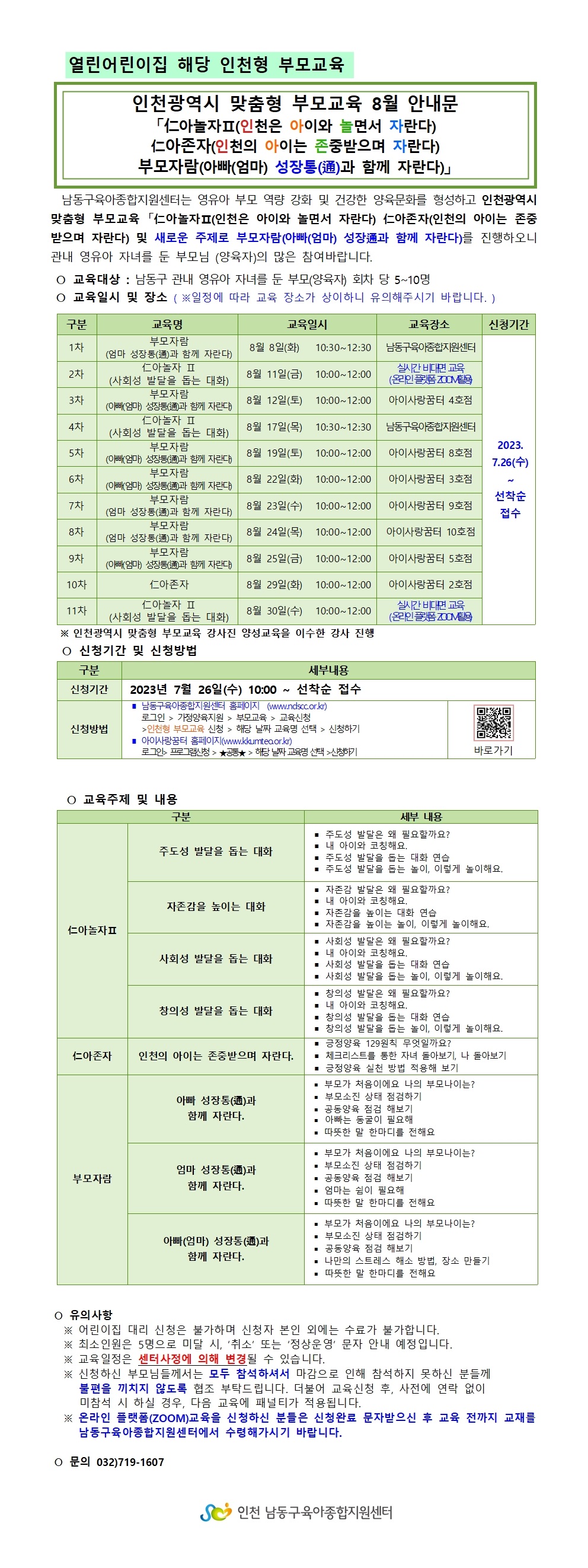 함께 키우고, 함께 웃는 행복육아실현 인천 남동구 육아종합지원센터