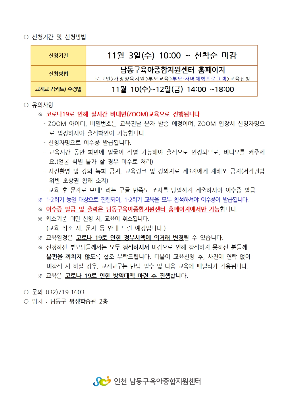 기타사항 ★ 1회기 신청시, 2회기까지 진행되는 부모교육입니다.