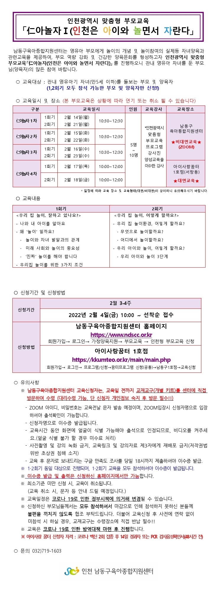 함께 키우고, 함께 웃는 행복육아실현 인천 남동구 육아종합지원센터