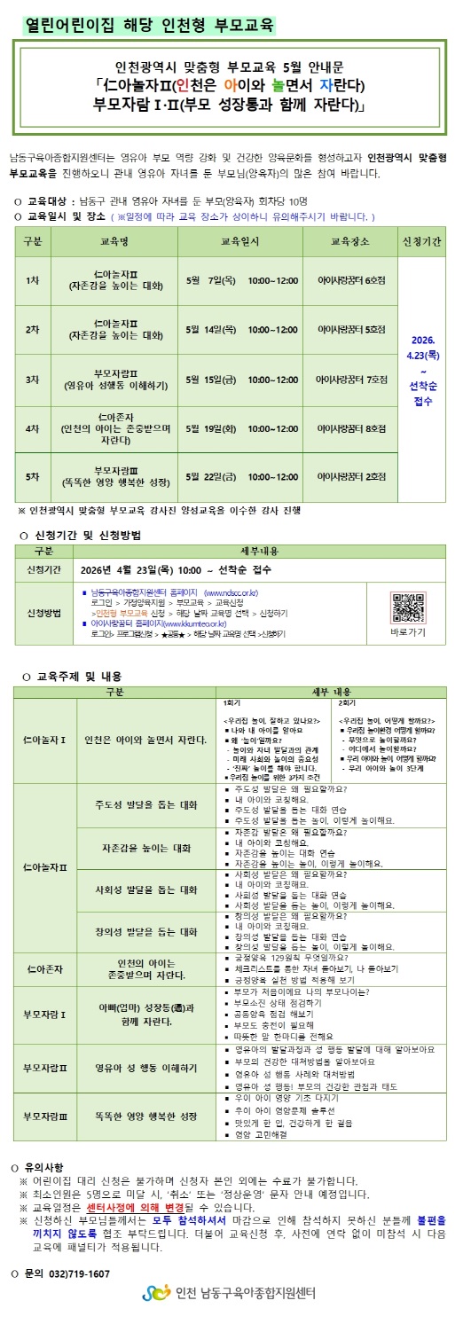 함께 키우고, 함께 웃는 행복육아실현 인천 남동구 육아종합지원센터