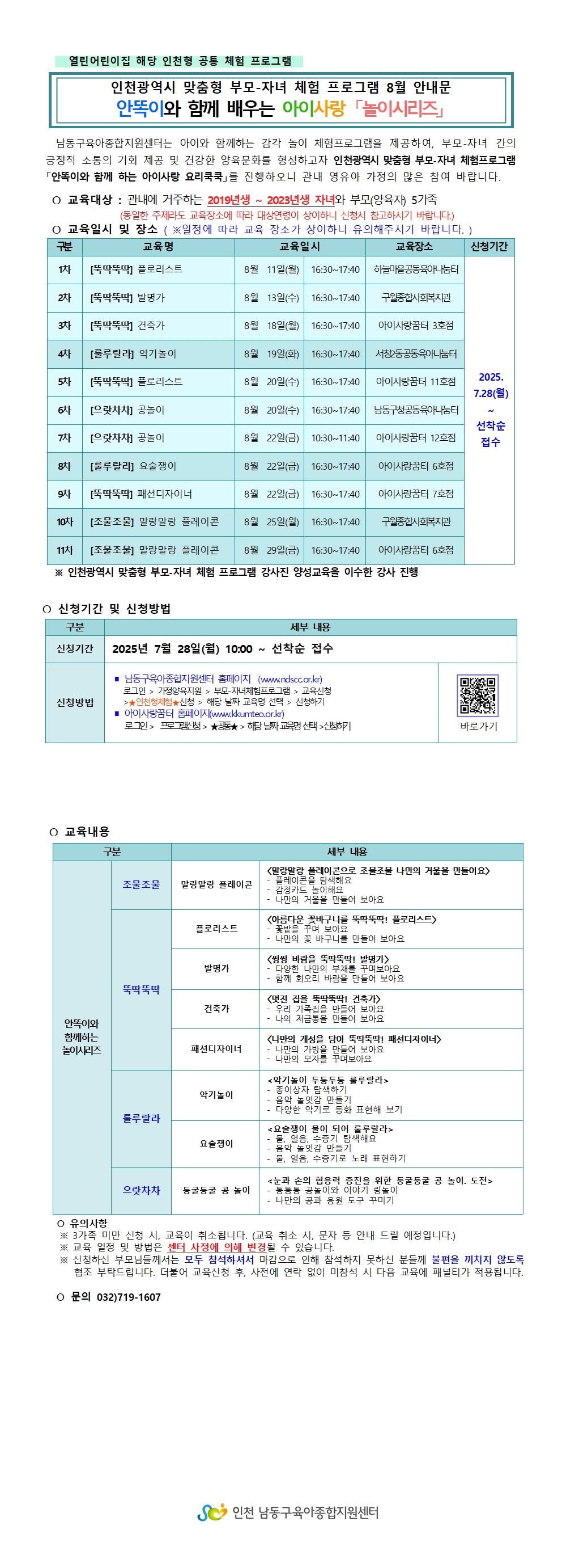 함께 키우고, 함께 웃는 행복육아실현 인천 남동구 육아종합지원센터