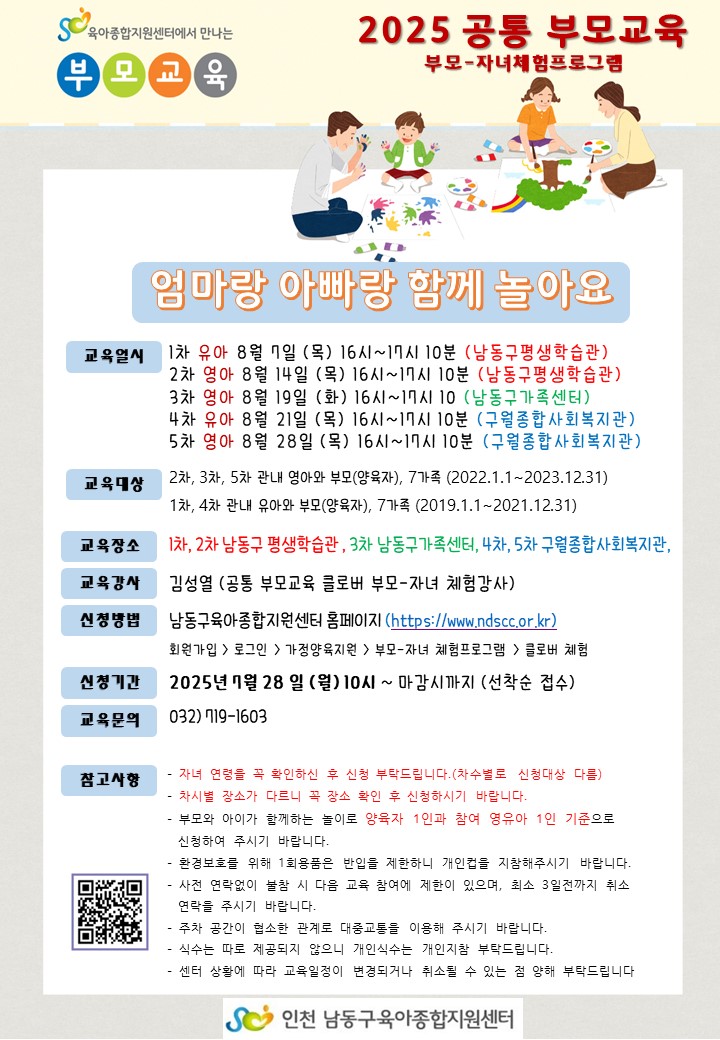 함께 키우고, 함께 웃는 행복육아실현 인천 남동구 육아종합지원센터