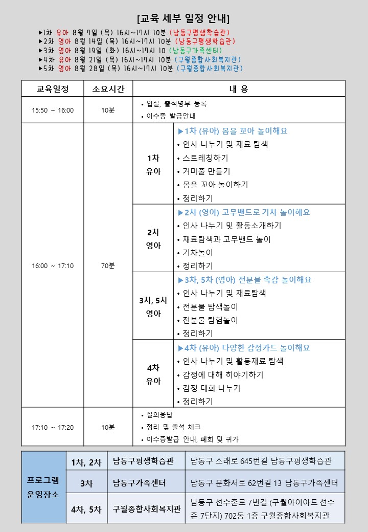 ★ 체험 장소가 남동구가족센터입니다. 장소를 확인하시고 신청해주시기 바랍니다.