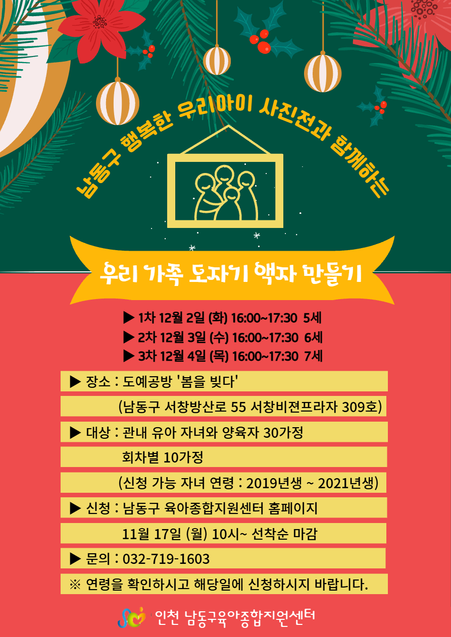 제 5회 남동구 행복한 우리아이 사진전과 함께하는 체험 프로그램 '우리 가족 도자기 액자 만들기' (5세)