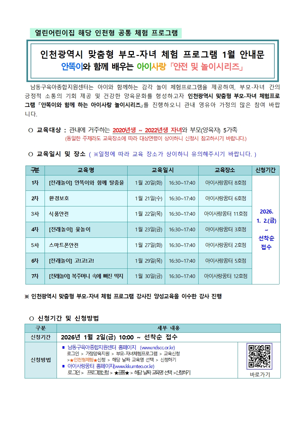 함께 키우고, 함께 웃는 행복육아실현 인천 남동구 육아종합지원센터