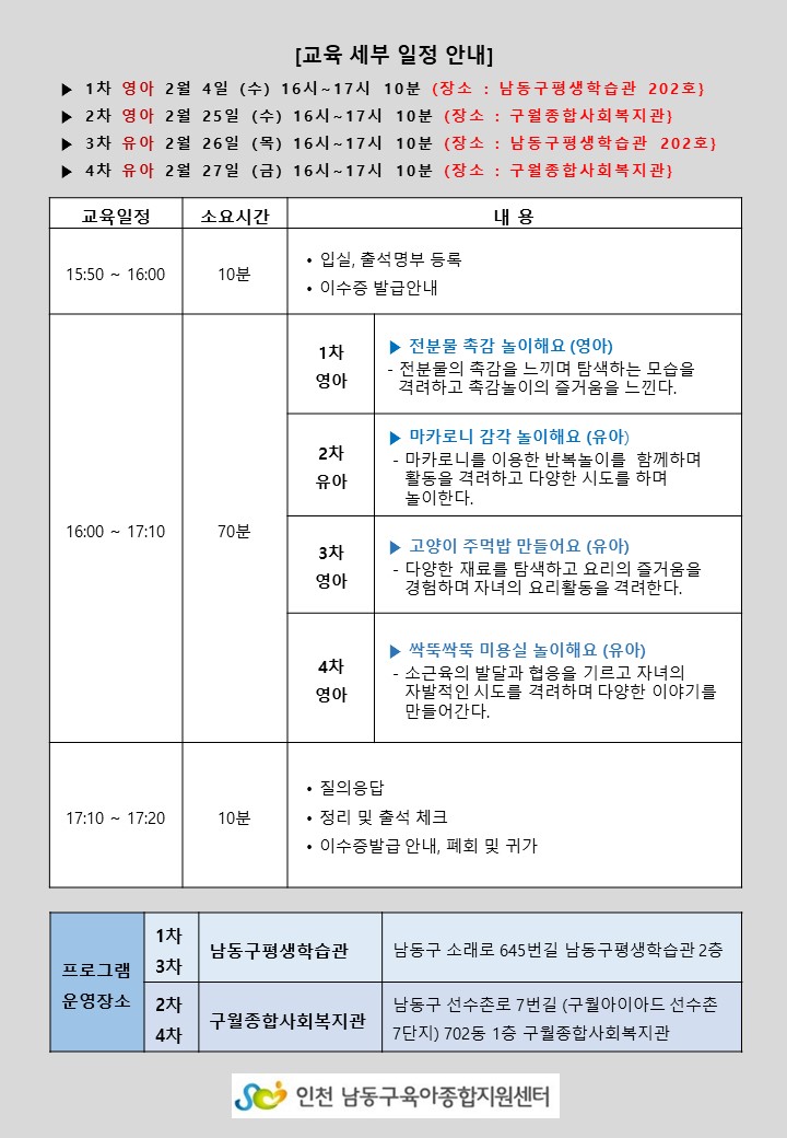 | 장소 | 남동구평생학습관 2층 배움실 202호 | ||