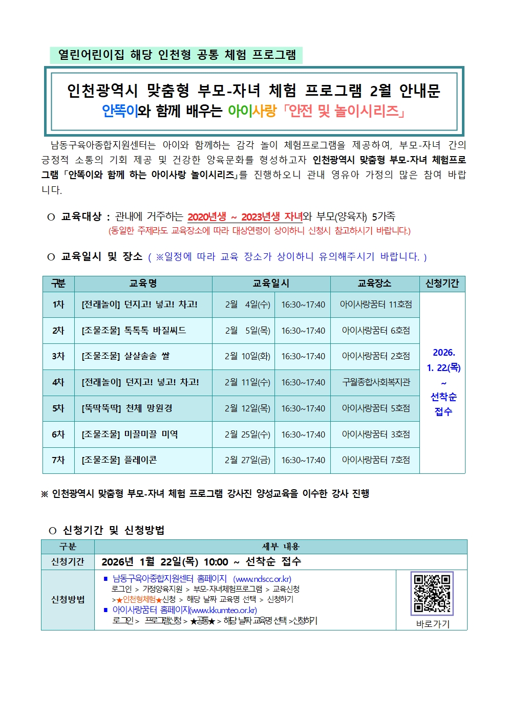 기타사항 *아이사랑꿈터홈페이지에서 신청 가능합니다.