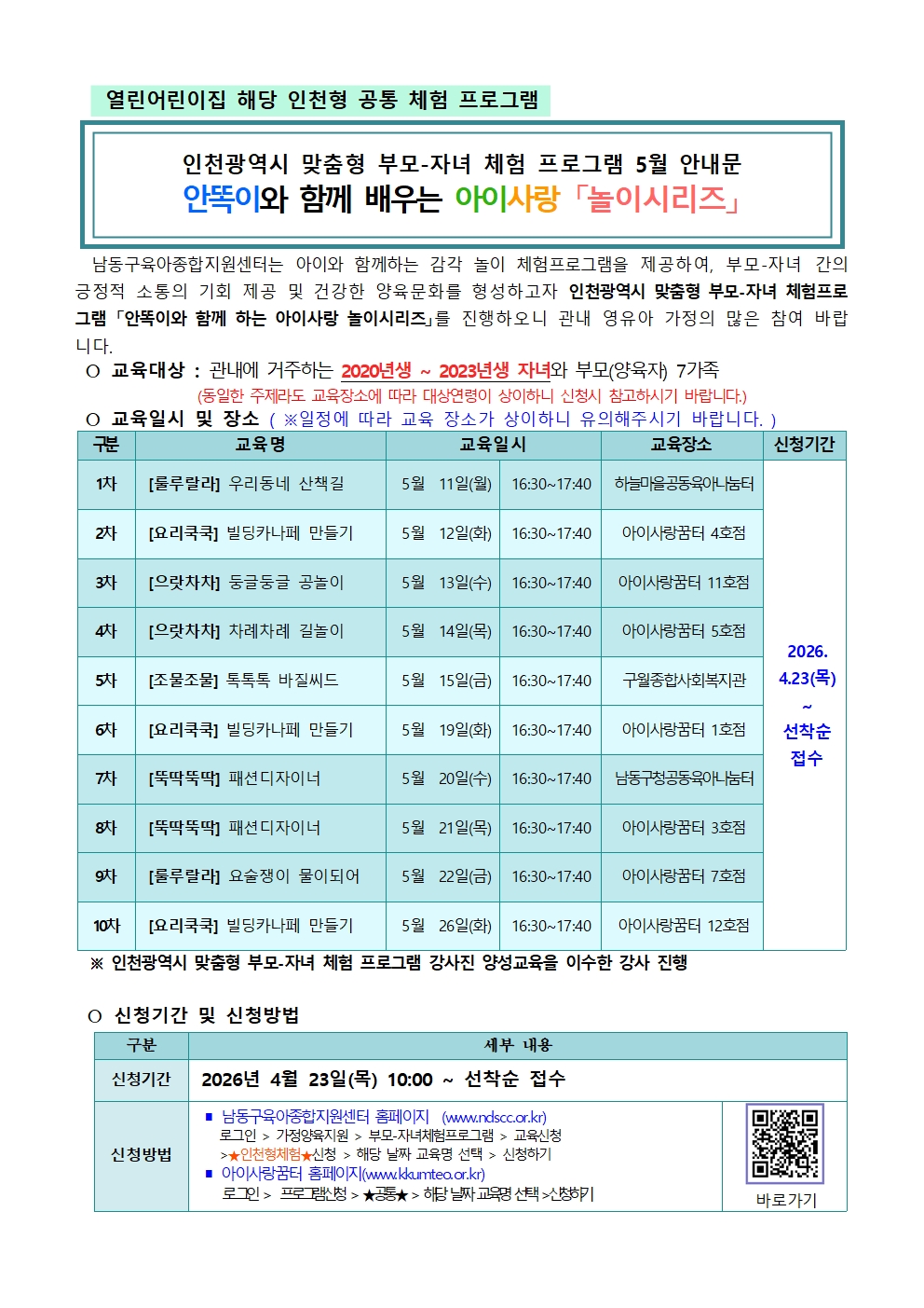 | 강사 | 인천시 맞춤형 부모-자녀 체험 강사 | ||